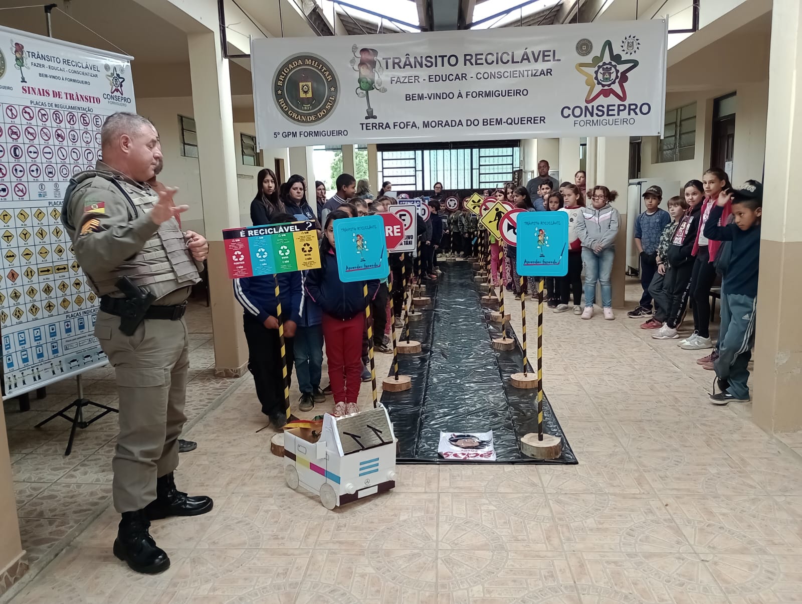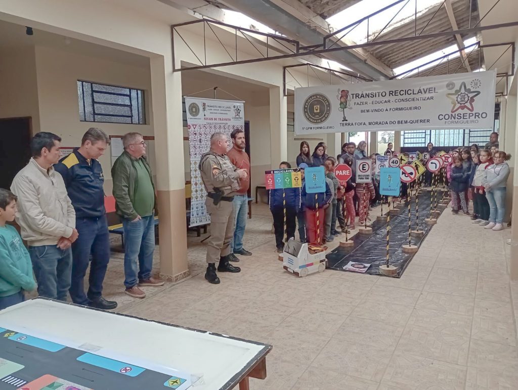 Nesta quarta-feira, 19, a Brigada Militar de Formigueiro realizou a abertura oficial do Projeto Trânsito Reciclável, atividade que tem duração de 20 horas/aula. A Escola Santa Rosa foi a primeira a ser contemplada, e está prevista a expansão para outras escolas no decorrer do ano letivo.