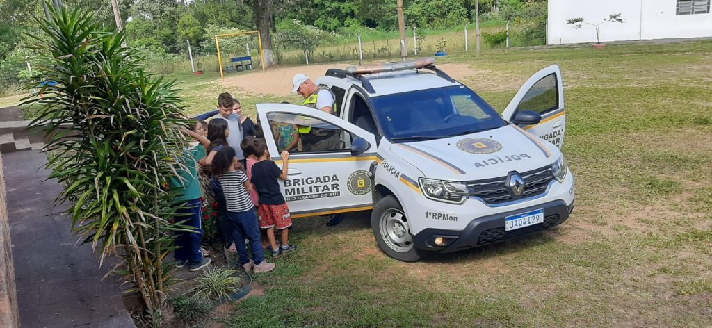 Na manhã desta sexta-feira, 24, a Brigada Militar, por meio do sargento Everaldo, realizou a palestra “O policial e o aluno lado a lado”, nas Escolas Municipais São Vicente de Paulo, na Colônia Antão Farias, e Acácio Antônio Vieira, no Fundo do Formigueiro, interior do município.