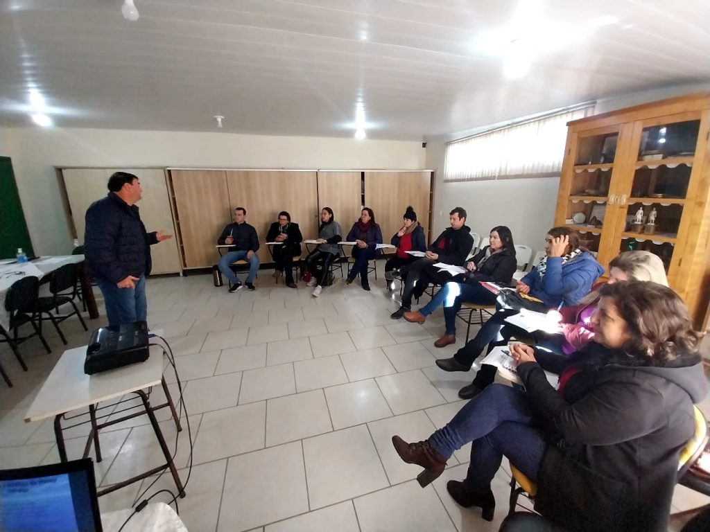 A reunião contou com a presença do presidente do Comdica, sr. Claudionir Bender, secretário de Educação Cristiano Cassol, equipe da SMECDE e diretores de escolas.